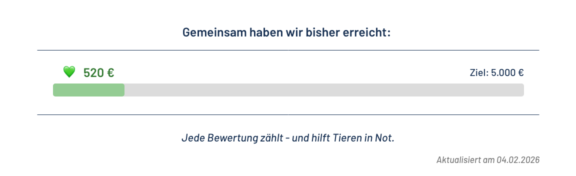 Für jede abgegebene Bewertung spenden wir 10 € an Gut Aiderbichl.